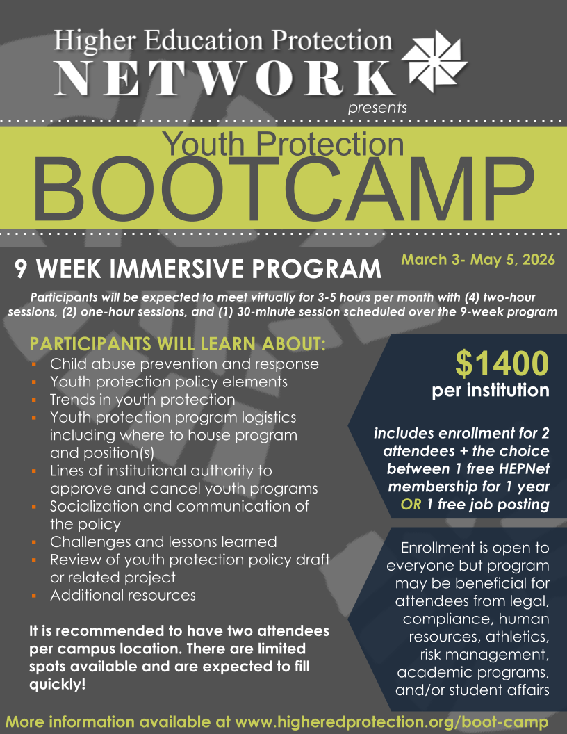 - In between the sessions on 4/21 and 5/5, participants will individually schedule office hours with a youth protection expert to review your Boot Camp project/goal